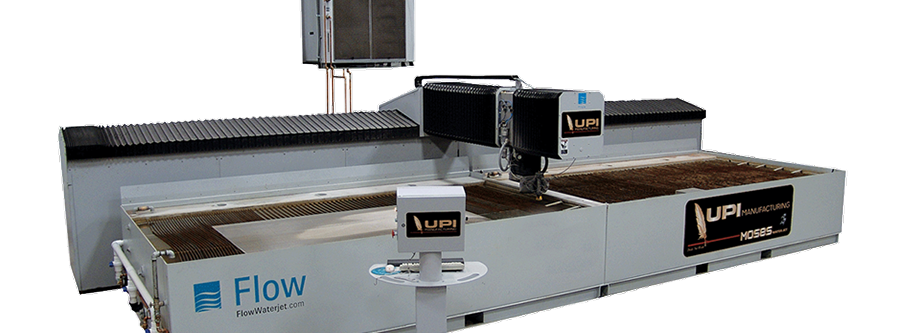 UPI Manufacturings Flow Mach 3 Dynamic dual bed (90,000 psi – 100 hp pump) waterjet with active tolerance control and ultra-pierce capability brings waterjet cutting to a new level. With bed capacity of 6.5 feet x 25 feet. With cutting thicknesses up to 14.0 inches that gives us the ability to stack material and provide multiple parts with 1 cut. The combination of precision speed and pressure allows us to deliver quick and versatile parts to our customers at a cost competitive advantage.